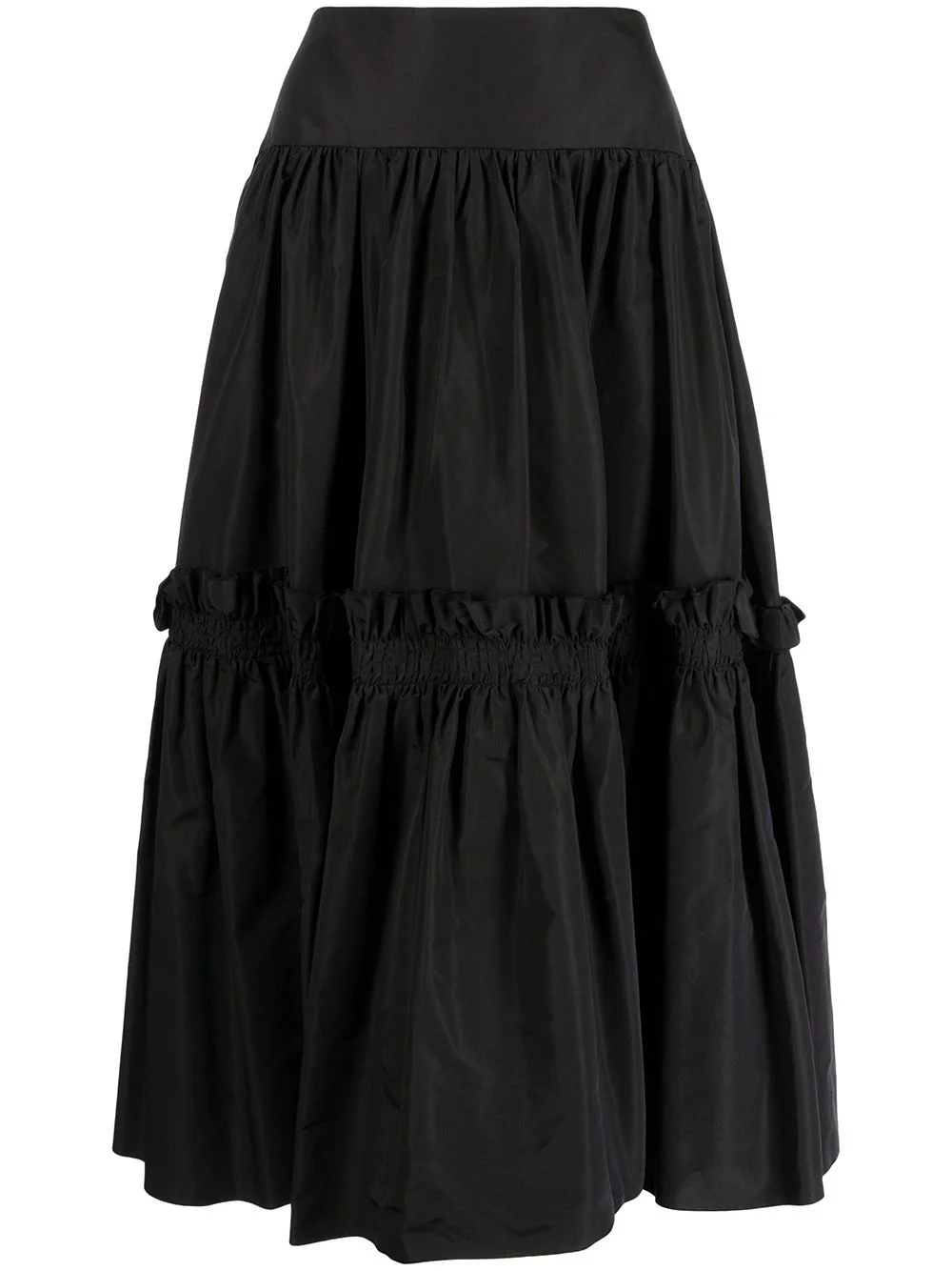 Ruffled Full silk midi skirt black silk high-waisted ruffled detailing full skirt tiered skirt mid-length rear zip fastening Imported Composition Silk 100% SIZE & FIT Model measurements Height 6 ft 1 in(1.86 m) Bust/Chest 34.64 in(88 cm) Hips 36.22 in(92 cm) Waist 27.16 in(69 cm) FittingInformation This piece fits true to size. We recommend you get your regular size Designed for a loose fit with a close fit at the waist Made with a mid-weight fabric Washing instructions Dry Clean Only