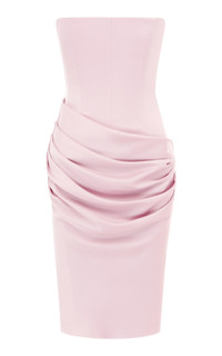 PRODUCT DETAILS - Strapless, corset bodice, drape at hips, knee-length - Concealed zip fastening along back - Lined - Composition: 80% Acetate, 20% Polyester - Color: pink - Dry clean only - Spring/Summer '25