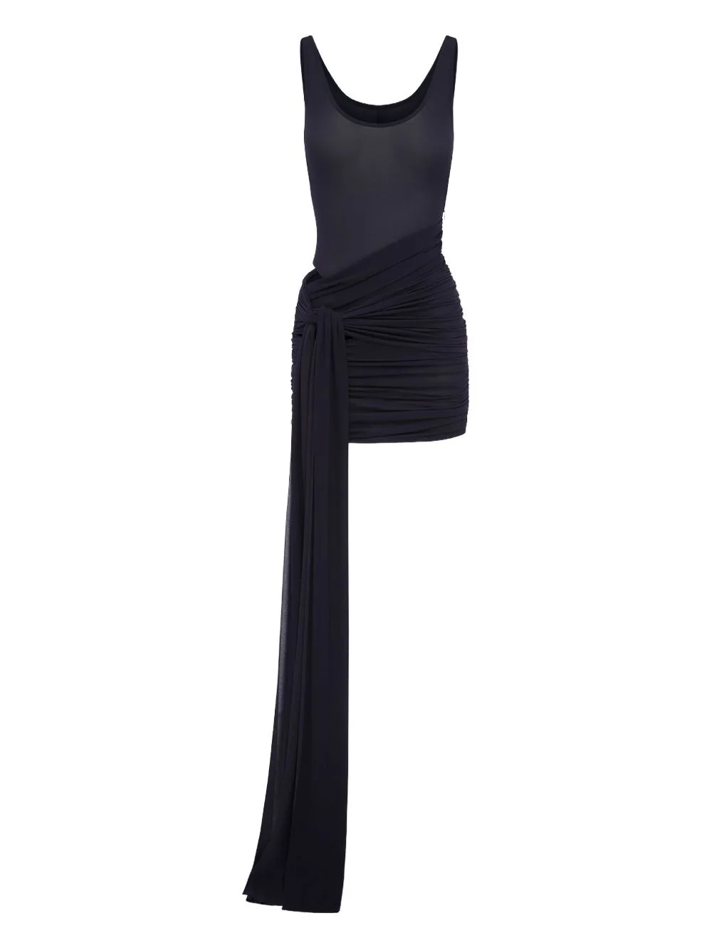 ruched mini dress Highlights - Navy blue - Scoop neck - Gathered detailing - Side draping Imported Composition Recycled Polyester 91%, Elastane 9% Washing instructions Dry Clean Only