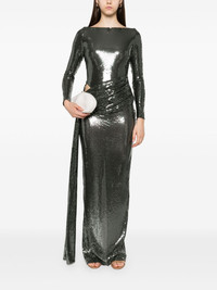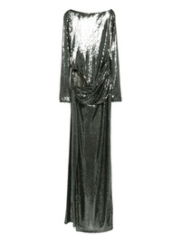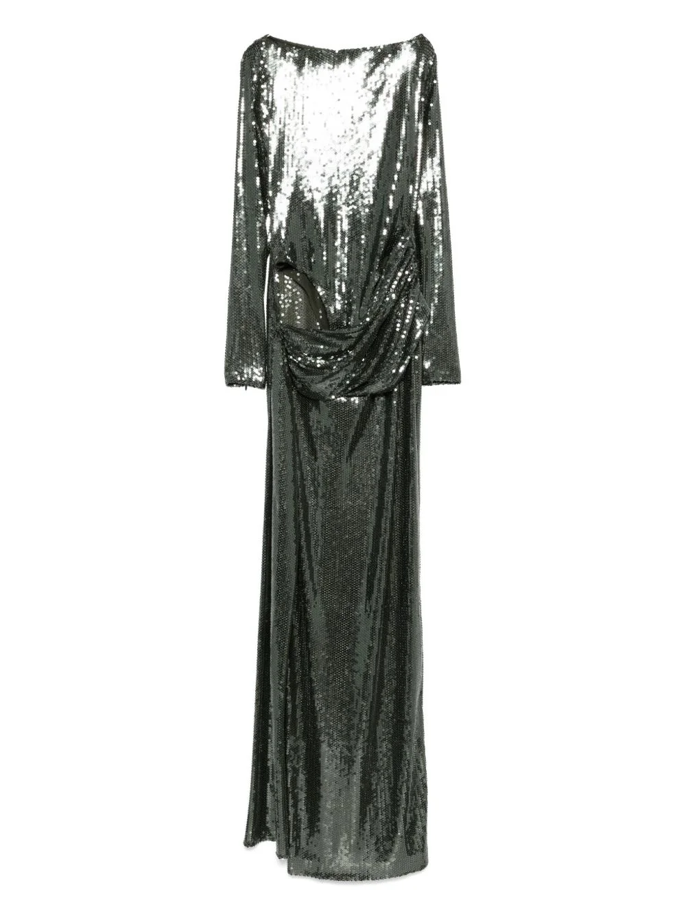 sequin-embellished maxi dress Highlights - Dark green - Sequin embellishment - Draped detailing - Long sleeves - Cut-out side Imported Composition Polyamide 95%, Spandex/Elastane 5% SIZE & FIT Model measurements Height 5 ft 10 in(1.78 m) Bust/Chest 33.85 in(86 cm) Hips 36.61 in(93 cm) Waist 26.77 in(68 cm) Washing instructions Dry Clean Only