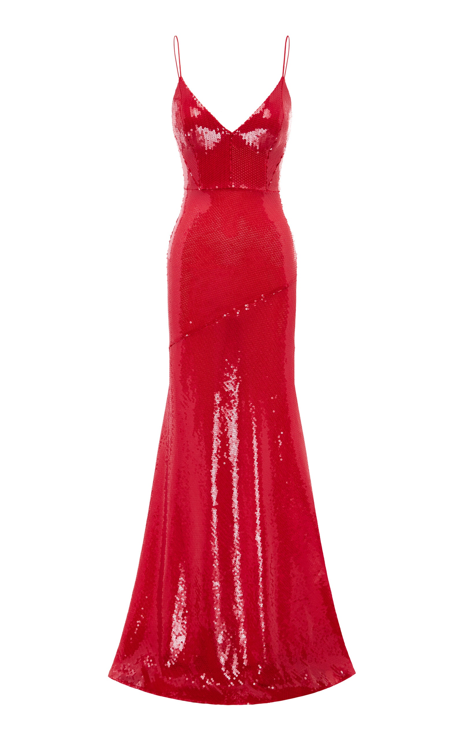 PRODUCT DETAILS - Cami straps, triangle bust, corset underbust, sequin embroidered, floor-grazing hem - Concealed zip fastening along back - Lined - Composition: 95% Polyester, 5% Elastane - Color: red - Dry clean only - Spring/Summer '25