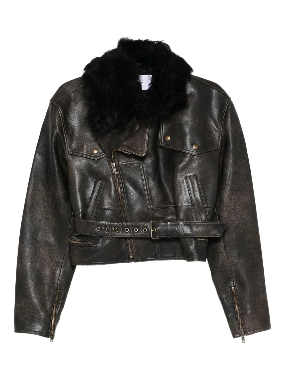 fur belted jacket Highlights - Brown - Fur collar - Zip fastening - Belt - Front flap pockets - Zip detail at cuffs Imported Composition Outer: Calf Leather 100% Lining: Viscose 100% SIZE & FIT Model measurements Height 5 ft 10 in(1.78 m) Bust/Chest 33.46 in(85 cm) Hips 36.22 in(92 cm) Waist 23.22 in(59 cm) Washing instructions Specialist Cleaning