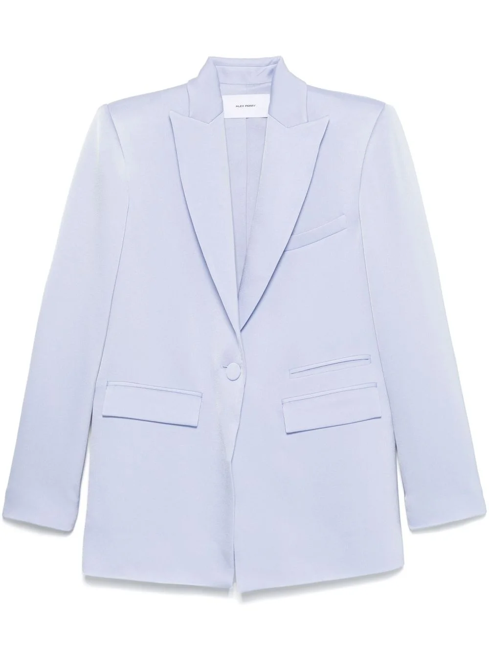satin crepe blazer Highlights - Ice blue - Crepe texture - Satin finish - Front button fastening - Peak lapels - Shoulder pads - Long sleeves with buttoned cuffs - Chest welt pocket - Two front flap pockets - American rear vent - Full lining - Straight hem Imported Composition Acetate 84%, Polyester 16%