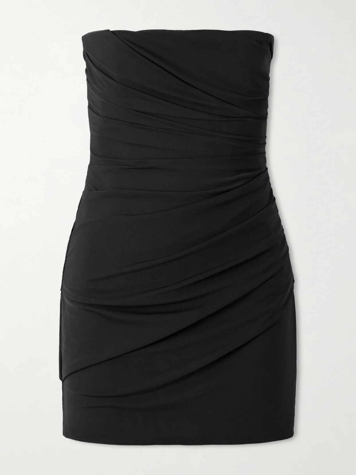 Strapless Gathered Stretch-mesh Mini Dress