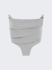 Strapless Longline Corset Top In Wool Suiting Dove Grey