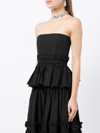 Strapless Peplum silk bustier black silk ruffled detailing pleat detailing strapless peplum hem rear zip fastening Imported Composition Silk 100% SIZE & FIT Model measurements Height 6 ft 1 in(1.86 m) Bust/Chest 34.64 in(88 cm) Hips 36.22 in(92 cm) Waist 27.16 in(69 cm) FittingInformation This piece fits true to size. We recommend you get your regular size Cut for a loose fit with a close fitting internal support Made with a mid-weight non-stretch fabric