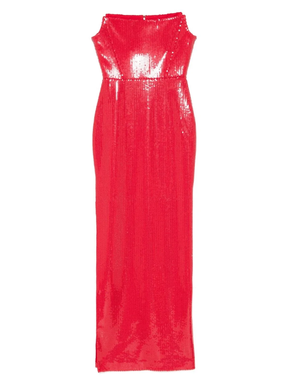 strapless sequinned maxi dress Highlights - Crimson - Concealed rear hook and zip fastening - Side slit - Boned bodice - Sleeveless Imported Composition Outer: Polyester 95%, Elastane 5% Lining: Acetate 84%, Polyester 16% SIZE & FIT Model measurements Height 5 ft 10 in(1.78 m) Bust/Chest 32.67 in(83 cm) Hips 35.43 in(90 cm) Waist 23.22 in(59 cm) FittingInformation Designed for a close fit throughout Made from a midweight fabric Washing instructions Dry Clean Only