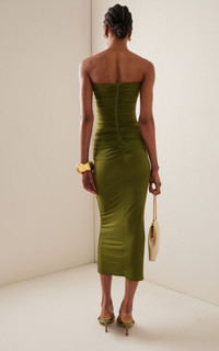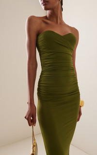 The Australian favorite returns for Fall with the sharply tailored, nipped-in-all-the-right-places occasionwear women love him for—in signature materials and fits, and featuring a host of new details and finishes. Cut from figure-hugging jersey-crepe, this fitted mini features a ruched wrap-effect bodice to accentuate your natural curves. PRODUCT DETAILS - Pre-Fall '24 - Concealed zip fastening along back - Composition: jersey crepe - Designer color: Fern - Dry clean - Imported SIZE & FIT - Our model is wearing a size UK 6 - Model is 5'10" with a 30" bust, 24" waist, and 34" hip - Designed for a slim fit - This style fits small to size, we recommend taking one size up