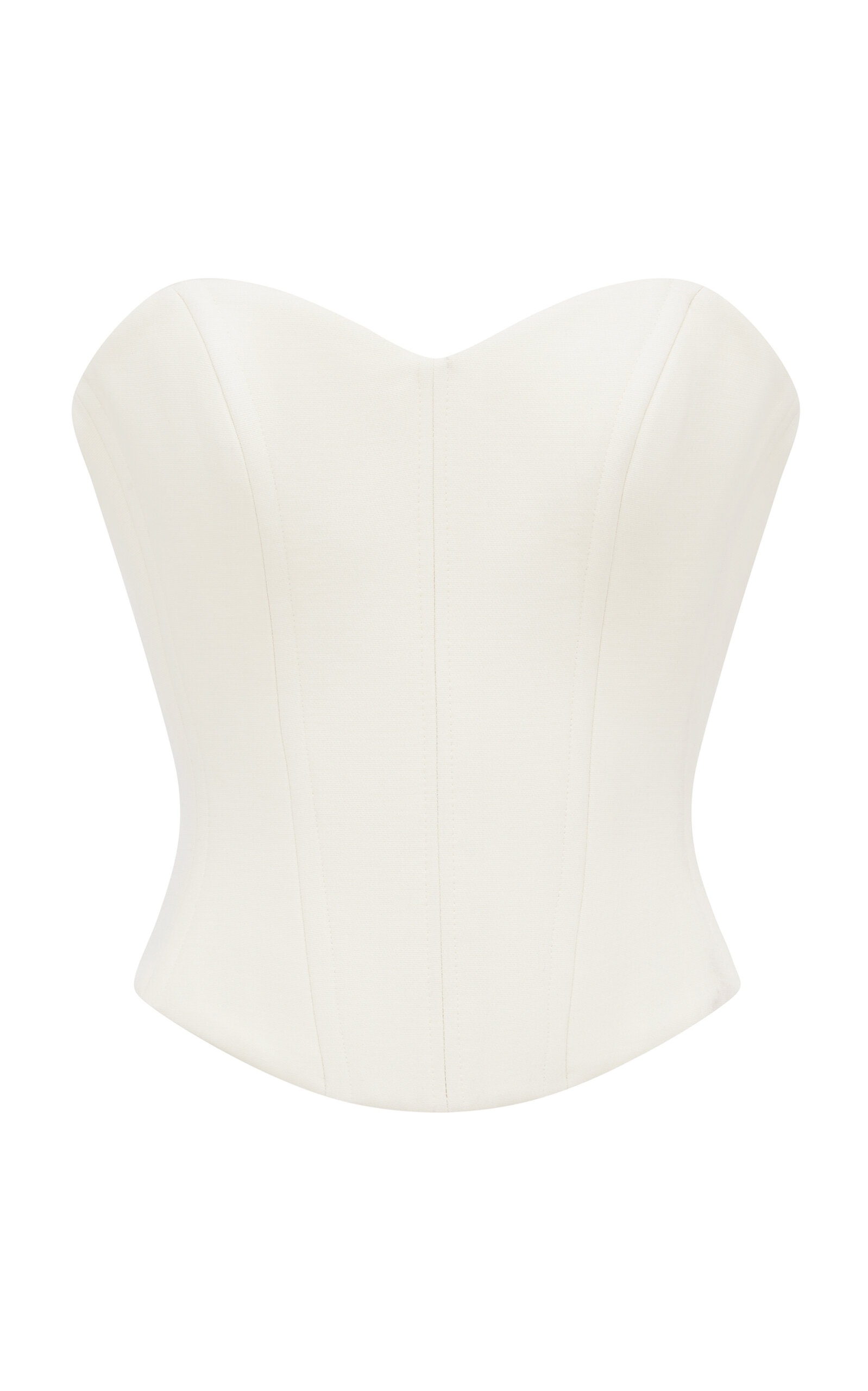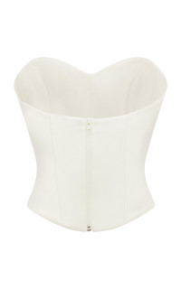 PRODUCT DETAILS - Strapless, sweetheart neck, fitted, longline, curved hem - Concealed zip fastening along back - Lined - Composition: 50% Virgin Wool, 27% Cotton, 23% Viscose - Color: off-white - Dry clean only - Spring/Summer '25