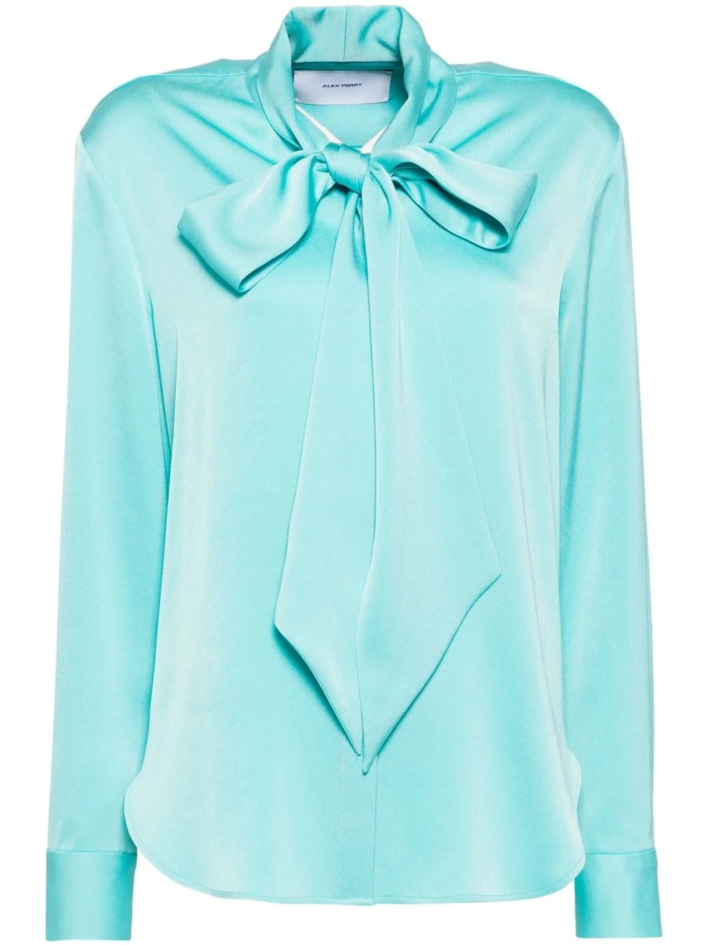 tie shirt Highlights - Tiffany blue - Front button fastening - Self-tie fastening - Buttoned cuffs - Curved hem Imported Composition Polyester 100% SIZE & FIT Model measurements Height 5 ft 10 in(1.77 m) Bust/Chest 31.49 in(80 cm) Hips 35.43 in(90 cm) Waist 25.19 in(64 cm) FittingInformation Designed to be unstructured, offering a loose fit throughout Made from a midweight non-stretch fabric, this piece offers minimal elasticity when worn