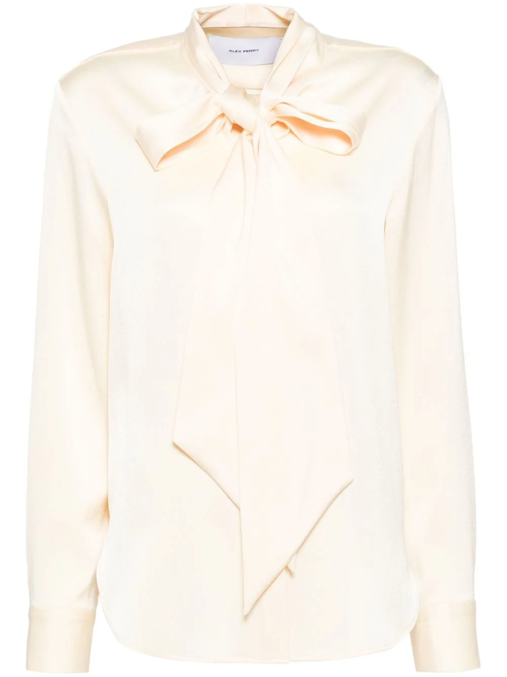 tie shirt Highlights - Light orange - Front button fastening - Self-tie fastening - Buttoned cuffs - Curved hem Imported Composition Polyester 100% SIZE & FIT Model measurements Height 5 ft 10 in(1.77 m) Bust/Chest 31.49 in(80 cm) Hips 35.43 in(90 cm) Waist 25.19 in(64 cm) FittingInformation Designed to be unstructured, offering a loose fit throughout Made from a midweight non-stretch fabric, this piece offers minimal elasticity when worn