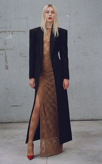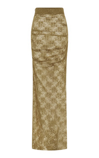 The Australian couturier is famous for his sharply clean and seductive red carpet gowns and black tie minis, each tailored with the utmost precision to ensure second-skin fits. Designed for a slim fit, the label fashions this maxi skirt from sheer lace blended with stretch. The silhouette boasts a high waist, delicate ruching and a side slit for easy movement. Complete the look with the matching bodysuit and a tailored blazer. PRODUCT DETAILS - Pre-Fall '25 - Concealed zip fastening - Composition: 90% polyamide, 10% elastane - Dry clean only - Imported