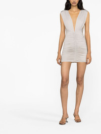 V-neck draped minidress Alex Perry’s focus on construction is evidenced by this minidress. Rendered in light grey hue, its draped silhouette and the plunging V-neck make it the cocktail dress to have in your closet every season. Highlights - Light grey - Stretch-design - Ruched detailing - Plunging v-neck - Sleeveless - V-back - Fitted waistline - Straight hem - Thigh-length Imported Composition Nylon 82%, Spandex/Elastane 18% SIZE & FIT Model measurements Height 5 ft 10 in(1.78 m) Bust/Chest 31.49 in(80 cm) Hips 35.03 in(89 cm) Waist 23.62 in(60 cm) Measurement LENGTH 31.88 in(81 cm) WAIST 22.83 in(58 cm) HIPS 30.7 in(78 cm) FittingInformation Designed for a close fit throughout Made from a midweight stretch fabric, this piece offers elasticity and flexibility when worn This piece fits true to size – take your usual size Washing instructions Dry Clean Only