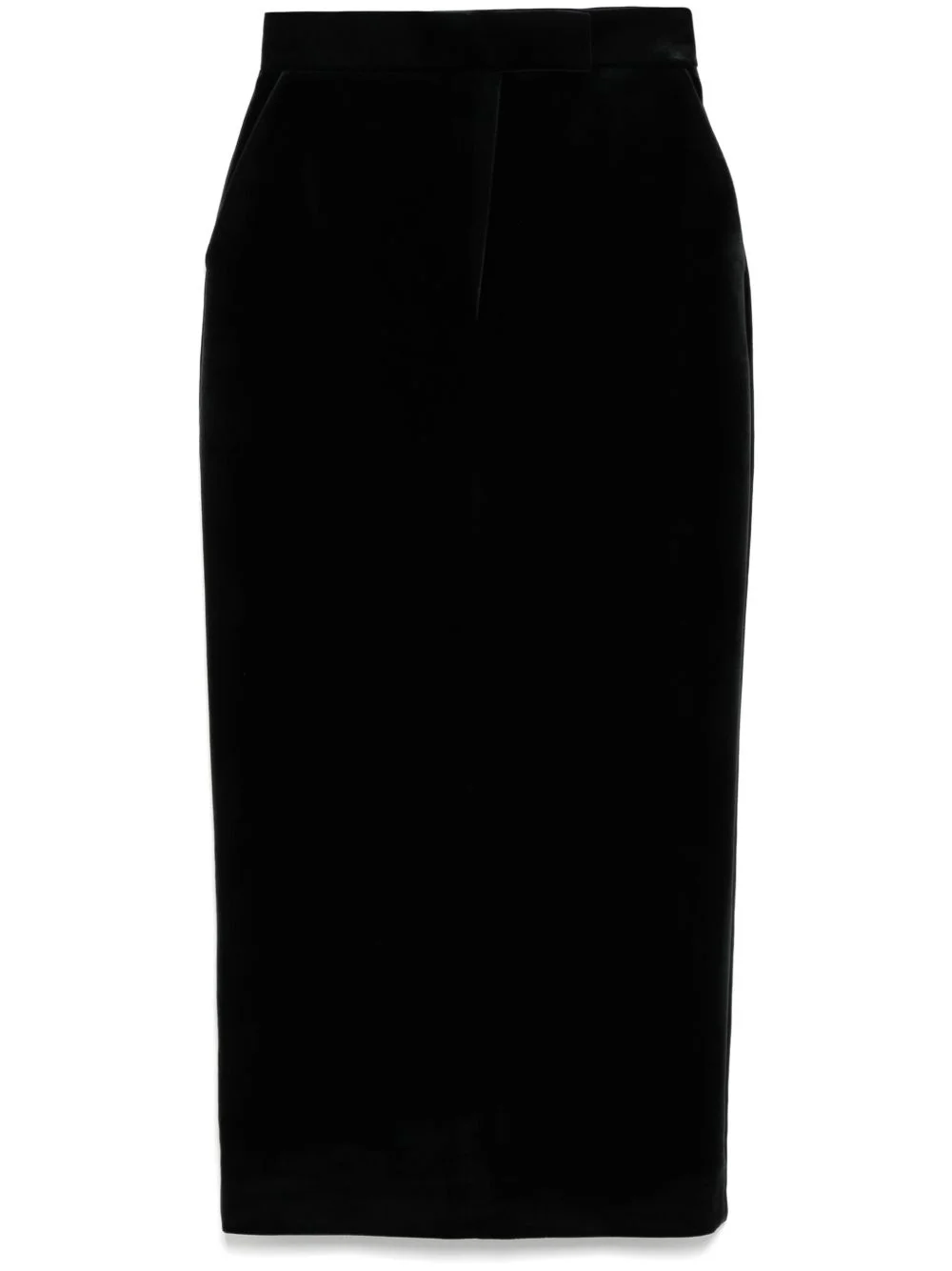 velvet pencil skirt Highlights - Black - Concealed rear hook and zip fastening - Two side inset pockets - Two rear jetted pockets - Central rear vent Imported Composition Outer: Polyester 95%, Spandex/Elastane 5% Lining: Acetate 80%, Polyester 20%