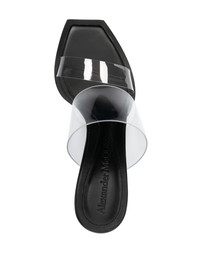 100mm double-strap sandals These mules from Alexander McQueen are crafted with two transparent front straps and a lightly padded, logo-debossed footbed. They're set on a high stiletto heel and boast a square open toe. Highlights - Black/transparent - Calf leather - Slip-on style - Branded footbed - Square toe - High stiletto heel Made in Italy Composition Rubber 100% SIZE & FIT Measurement HEEL 3.93 in(10 cm) Sole height 0.39 in(1 cm)
