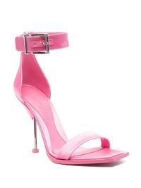 110mm satin-finish sandals Highlights - Pink - Calf leather - Satin finish - Buckle-fastening ankle strap - Crossover strap at the toe - Open toe - 110mm stiletto heel - Branded insole Made in Italy Composition Silk 100% SIZE & FIT Measurement HEEL 3.93 in(10 cm) HEIGHT 3.93 in(10 cm)