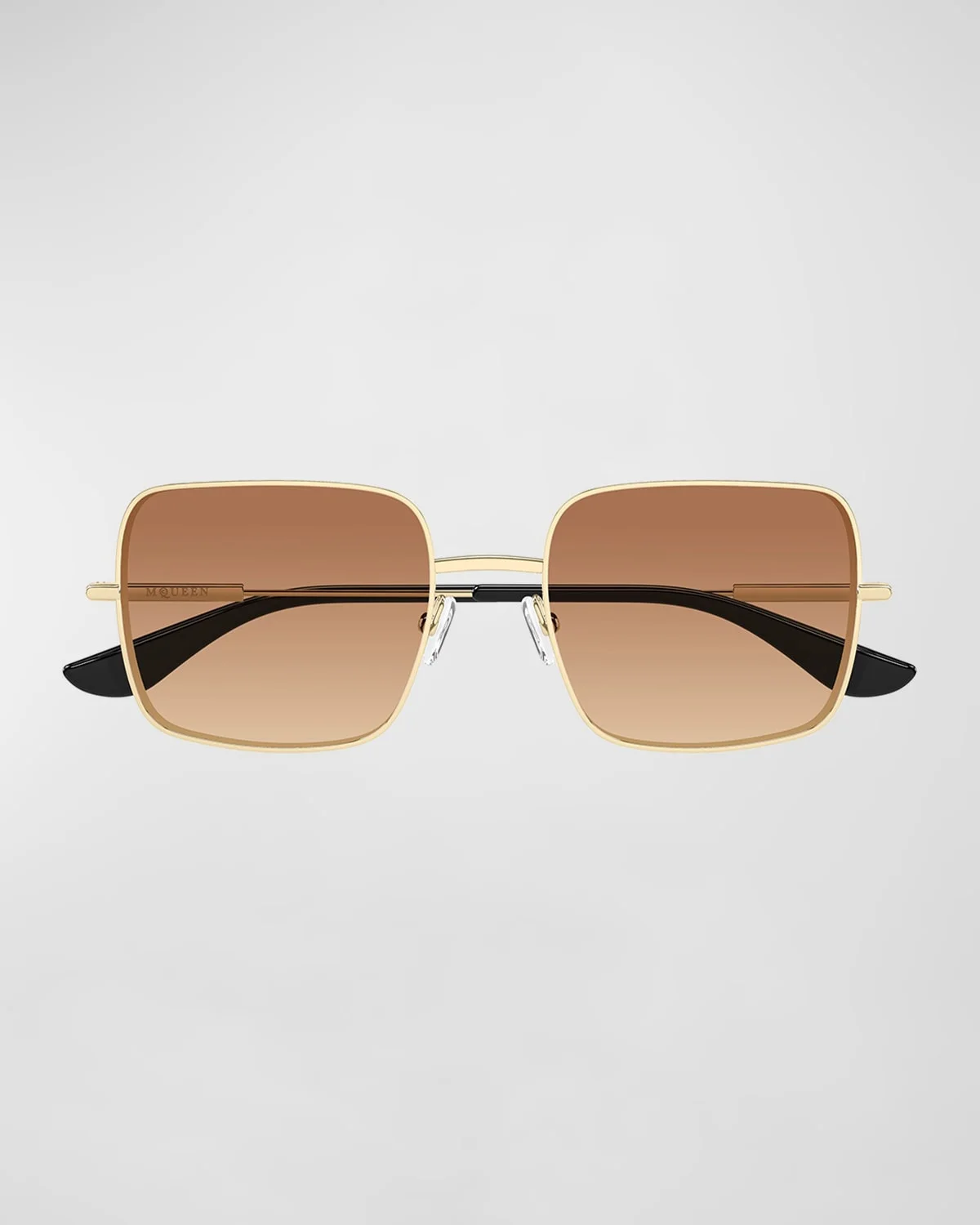 These McQueen "AM0564S" square sunglasses are set on shiny gold-tone frames and capped with acetate endtips. Eye/bridge/temple (in mm): 63-13-140 Gradient bio nylon lenses Adjustable nose pads Logo-engraved temples Acetate/metal 100% UVA/UVB protection Made in Japan
