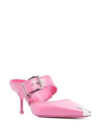 75mm metallic toe-cap detail mules bubblegum pink calf leather slip-on style side buckle fastening metal toecap pointed toe branded insole 75mm high heel Made in Italy Composition Outer: Calf Leather 100% Sole: Calf Leather 100% Lining: Calf Leather 100% SIZE & FIT Measurement HEEL 2.55 in(6.5 cm)