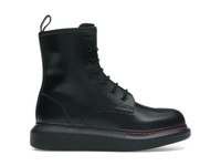Alexander McQueen Glossed-Leather Platform Ankle Boot Black Red (Women's)
