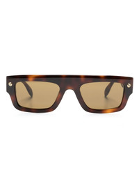 Spike Studs rectangular-frame sunglasses Alexander McQueen is known for theatrical designs, opulent detailing and gothic motifs. A case in point, these sunglasses are artfully embellished with spike studs. Highlights - Havana brown - Acetate - Tortoiseshell effect - Brown tinted lenses - Rectangle frame - Spike stud detailing - Logo-engraved arm - Straight arms - Curved tips - These glasses come with a protective case. Made in Italy Composition Acetate 100% SIZE & FIT Measurement Arm Length 5.7 in(14.5 cm) Bridge Width 0.82 in(2.1 cm) Lens Diameter 2.04 in(5.2 cm) Total Width 5.66 in(14.4 cm)