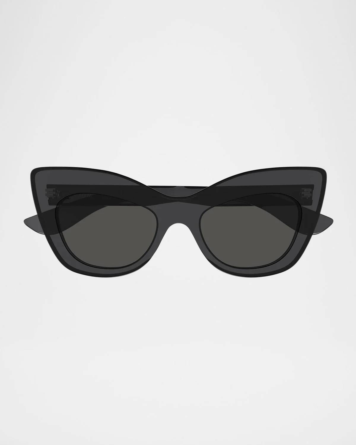- McQueen "AM0516S" cat-eye sunglasses - Eye/bridge/temple (in mm): 52-19-150 - Solid lenses - Saddle nose bridge - Thin, tapered arms - Plastic - 100% UVA/UVB protection - Made in Japan - Proposition 65 warning for California residents