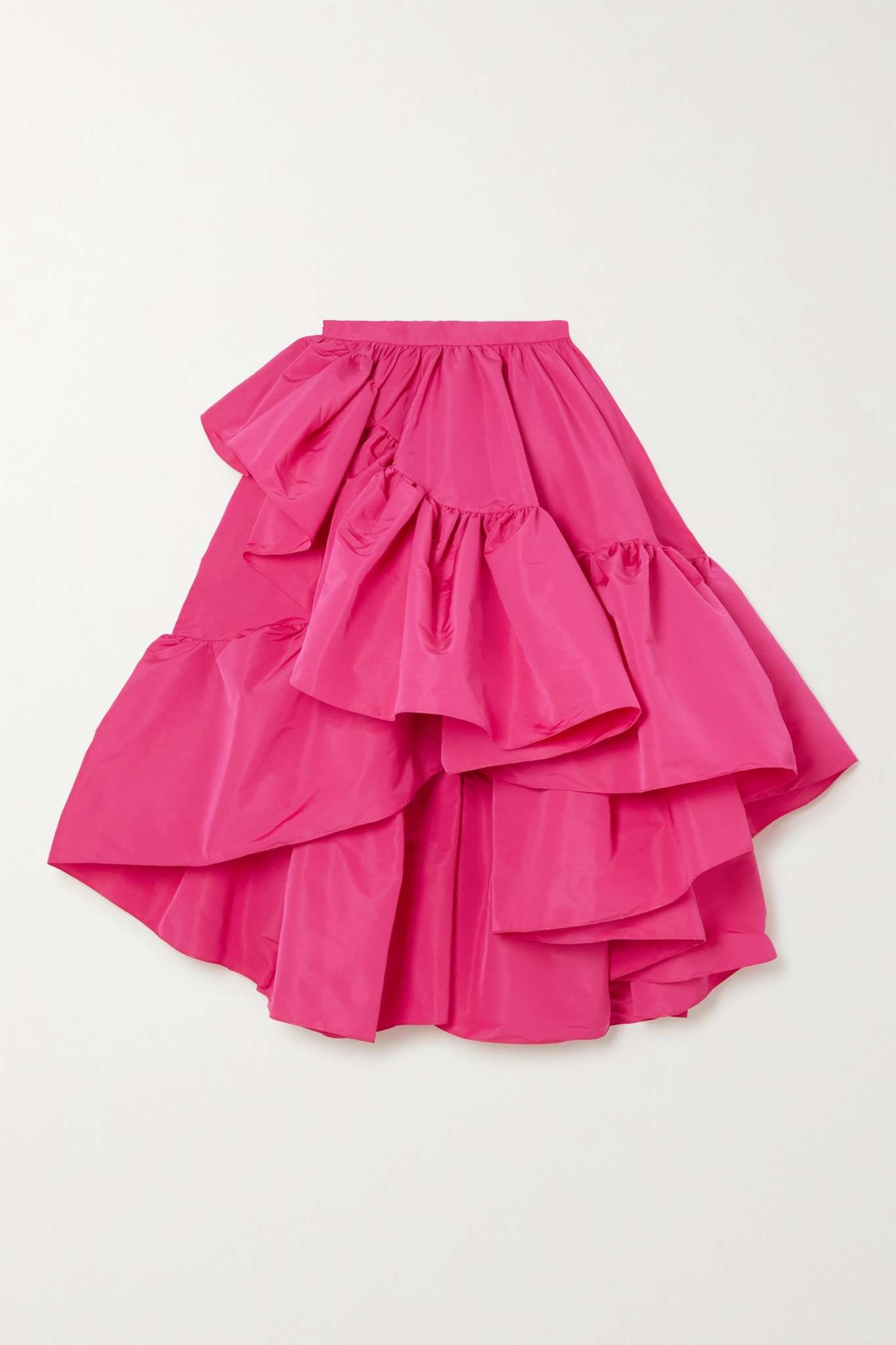 EDITORS'NOTES Alexander McQueen's midi skirt is the epitome of joyful dressing. It's made from layers of shocking-pink taffeta in an asymmetric silhouette and falls in flouncy ruffled tiers that create plenty of drama as you move. Style yours with a corseted bodice or a crisp white blouse. SIZE & FIT - Fits true to size, take your normal size - Midi-length, designed to be worn at the waist - Mid-weight, non-stretchy fabric - Model is 177cm/ 5'10" and is wearing an IT 40 DETAILS & CARE - Bright-pink taffeta - Concealed hook and zip fastening at back - 100% polyester - Dry clean - Designer color: Bobby Pink