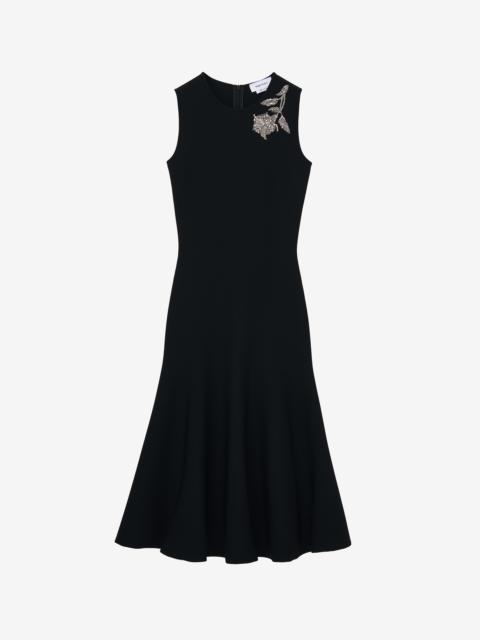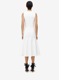 Knitted dress in optical white compact viscose with a silver Banshee embroidery. Crew neck and flared skirt. Finished with a back zip fastening. Product details - Crew neck - Sleeveless - Back zip fastening - Contains certified viscose yarn - Product code: 829732Q1BDP9090 - Made in Italy - Material: 75% Viscose, 17% Polyester, 6% Polyamide, 2% Elastane