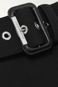 - Black wool-twill and leather - Concealed hook and zip fastening at back - 100% wool; trim: 100% leather; lining: 74% acetate, 26% silk - Dry clean