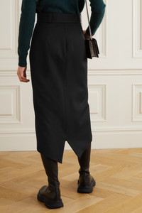 Belted wool-twill midi skirt