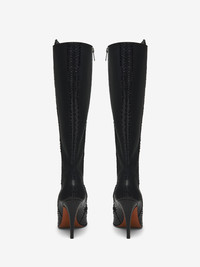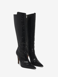 The Birdee Knee-high boot - Razor sharp stiletto boots. Sleek silhouette with a pointed toe. Luxurious black python skin. Finished with an inverted skull heel detail and inside zip closure. Product details - Zip closure - Elongated pointed toe - Embossed inverted skull - Leather sole - Heel height: 105mm - Product code: 813074WLAAG1000 - Made in Italy - Material: Python