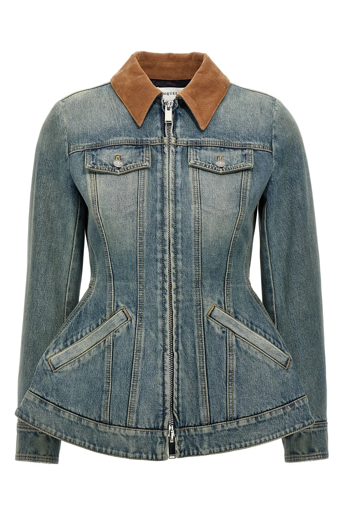 cod. 813538QMACV4315 Delave denim jacket, fitted pattern with flared garment bottom, pockets, corduroy collar, front zipper closure, long sleeve with cuff. Color: Blue Size & Fit: True to size fit italian size Composition: 100% cotton Made in: Italy