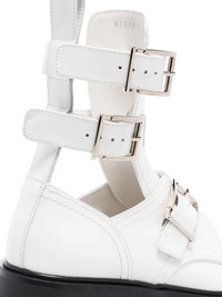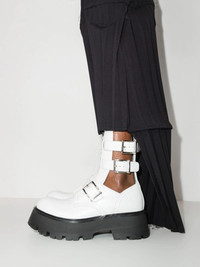 buckle-fastened caged boots Highlights - White/black - Leather - Side button fastening - Caged design - Round toe - Ridged rubber sole - Branded insole Made in Italy Composition Leather 100% SIZE & FIT Model measurements Height 5 ft 11 in(1.81 m) Bust/Chest 31.49 in(80 cm) Hips 35.82 in(91 cm) Waist 22.83 in(58 cm) FittingInformation This piece fits true to size. We recommend you get your regular size Measurement HEEL 2.36 in(6 cm) HEIGHT 5.9 in(15 cm) PLATFORM 1.96 in(5 cm)
