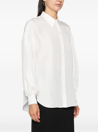 cocoon shirt Highlights - White - Silk - Satin weave - Cocoon design - Front button fastening - Pointed flat collar - Drop shoulder - Long sleeves with ribbed cuffs - Curved hem - We've partnered with good on you — an independent agency that rates how brands perform in relation to their impact on the planet, people and animals, with a multi-criteria rating simplified to a five points scale. in order to be awarded our conscious label, larger brands need to score a minimum of four out of five ('good'), while smaller brands must score at least three out of five ('it's a start'). - This item comes from a brand rated three out of five ('it's a start') by good on you at the time it was added on farfetch. please note, this is a brand-level rating and does not guarantee that this product is made with conscious materials. - Learn more about what makes a product conscious on our conscious criteria page Made in Italy Composition Silk 100% SIZE & FIT Model measurements Height 5 ft 10 in(1.79 m) Bust/Chest 33.07 in(84 cm) Hips 37 in(94 cm) Waist 25.19 in(64 cm) FittingInformation Designed to be unstructured, offering a loose fit throughout Made from a lightweight non-stretch fabric