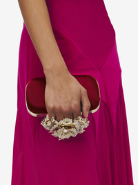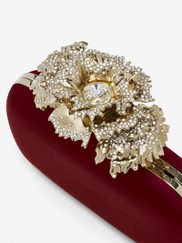 The Carnation Knuckle Clutch – crimson silk satin base featuring a metal knuckle handle adorned with a crystal-encrusted carnation flower in shiny pale gold finish. The bag can be worn either hand-held or over the shoulder with its gold-finished chain. Product details - Dimensions: Length 10 x Height 18 x Depth 4cm / 3.9 x 7 x 1.9 inches - Strap drop: 55cm / 21.6 inches - Gold-finished handle adorned with four rings and a crystal-encrusted carnation - Detachable chain strap - Brass hardware with pale gold finishing - Suede lining - Due to the appearance of the product, we recommend stowing it in your hold luggage when passing through airport security. For the same reason we recommend not taking the bag to public places, such as law courts and sports stadiums, where there may be security checks. - Product code: 8456481HBC46100 - Made in ITALY - Material: Silk