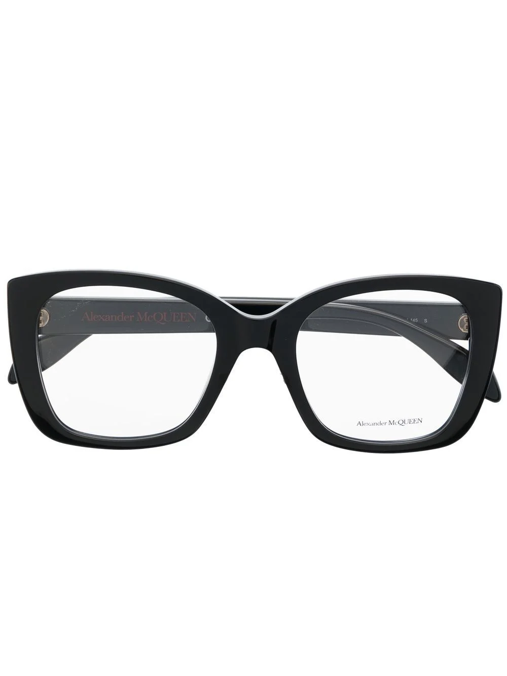 cat-eye glasses jet black cat-eye frame logo plaque at the arm curved tips All glasses from FARFETCH are sold as non-prescription frames. These glasses come with a protective case. Made in Italy Composition Acetate 100% SIZE & FIT Measurement Arm Length 5.7 in(14.5 cm) Bridge Width 0.82 in(2.1 cm) Lens Diameter 2.04 in(5.2 cm) Total Width 5.51 in(14 cm)