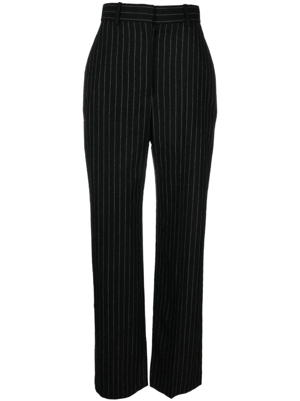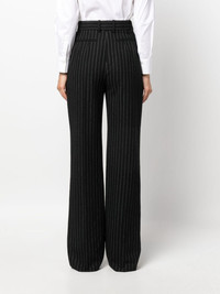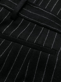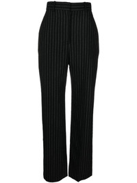 chalk stripe wool trousers Alexander McQueen is rooted in tailoring history – the eponymous founder left school at 16 to apprentice at the historic Savil Row. Continuing that legacy, these wool trousers are cut to sit high on the waist before falling to double-pleated wide legs. A contrasting chalk stripe weave reinforces their smart and timeless appeal. Highlights - Black/white - Wool - Tailored cut - Chalk stripe pattern - Pleat detailing - High-waisted - Belt loops - Hook and zip fly fastening - Two side inset pockets - Two rear welt pockets - Wide leg Made in Italy Composition Outer: Wool 100% SIZE & FIT Model measurements Height 5 ft 11 in(1.8 m) Bust/Chest 33.07 in(84 cm) Hips 37.4 in(95 cm) Waist 25.19 in(64 cm) FittingInformation Designed with a wide-leg cut, these trousers allow for a close fit at the waist and offer a loose and roomy fit over the leg Made from a midweight non-stretch fabric This piece fits true to size – take your usual size Washing instructions Dry Clean Only