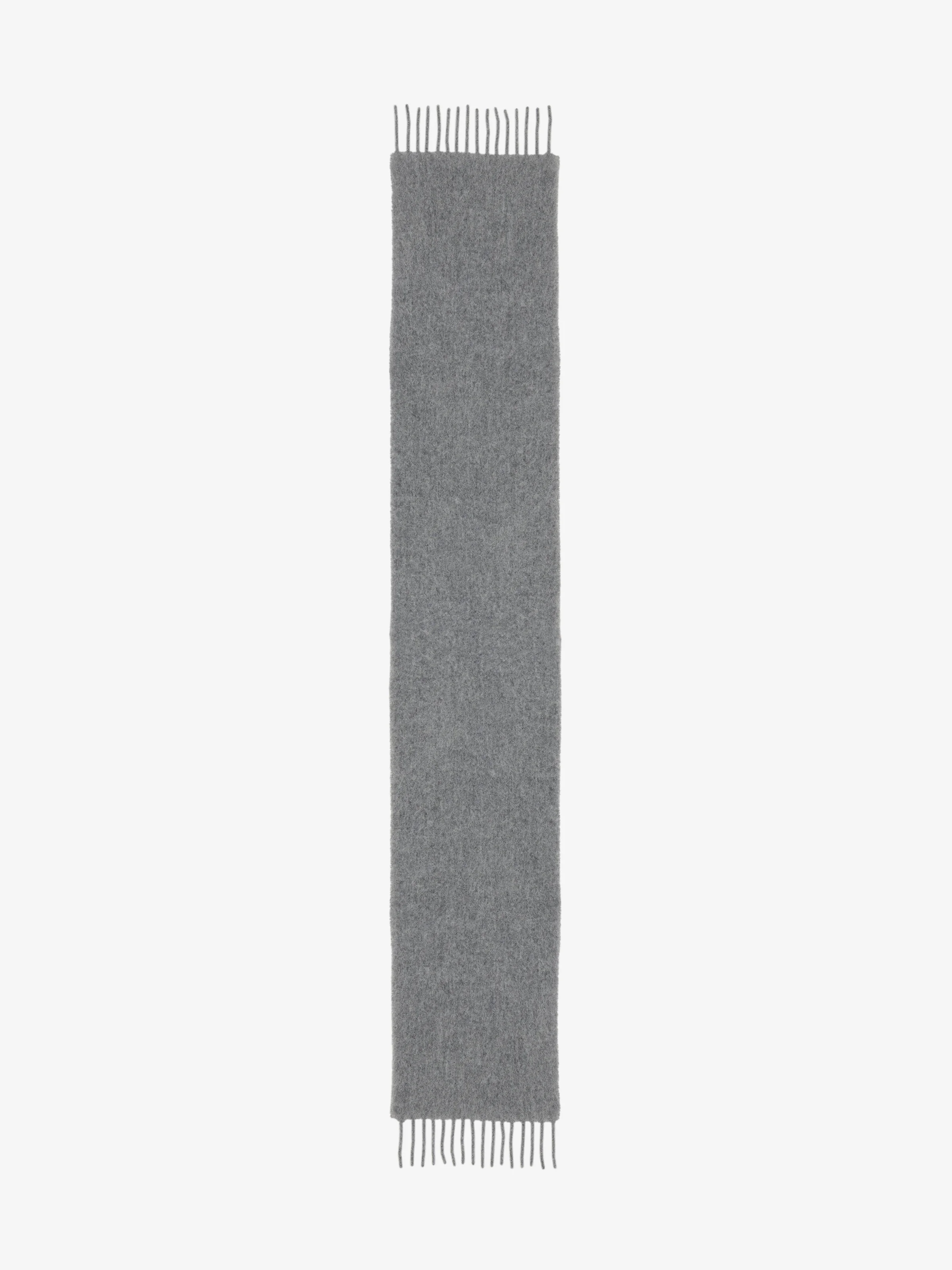 Classic scarf in lead alpaca wool blend. The scarf is finished with fringe detailing. Product details - Dimensions: 35 x 220cm / 13.7 x 88.5 inches - Product code: 8476393E78Q1400 - Made in ITALY - Material: 80% Alpaca Wool, 20% Polyamide