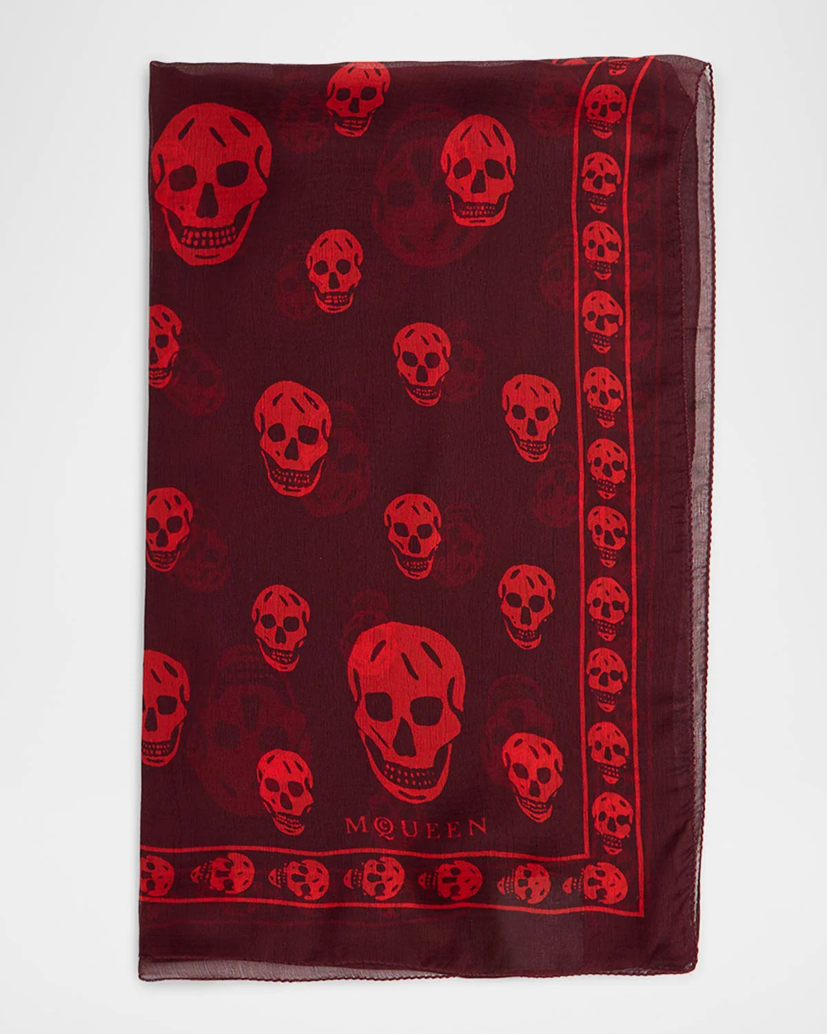 McQueen scarf in classic skull pattern silk Approx. 47.2"L x 40.9"W Can be worn multiple ways Dry clean Made in Italy