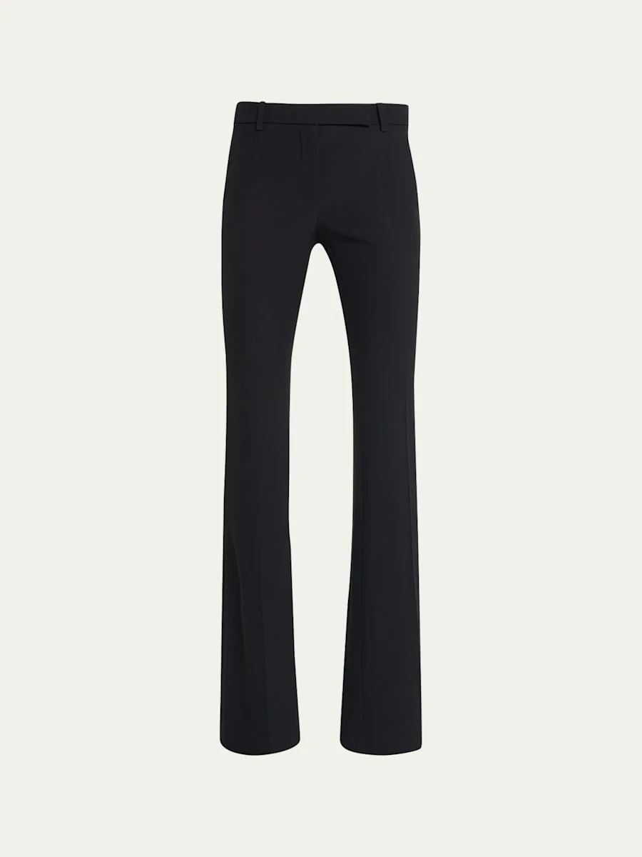 Alexander McQueen classic suiting pant. Mid rise. Slim fit through boot cut legs. Full length. Tab/zip fly belt loops. Viscose/acetate. Made in Italy. Model is 5'10"/177cm. Online Inquiries: BGS21_B86C3| Store Inquiries: #2985230