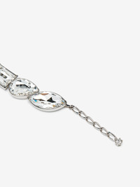 Palladium-finished choker featuring large clear crystals with pear and emerald cuts. Lobster clasp closure with engraved McQueen logo and crystal charm. Adjustable length. brass hardware with McQueen logo engraving on the back of the central crystal. Product details - Brass hardware - Palladium finish - Lobster clasp closure - Adjustable length - Product code: 853585J161B1021 - Made in ITALY - Material: LB 100% BRASS
