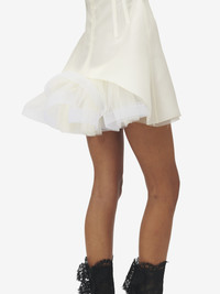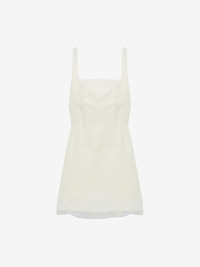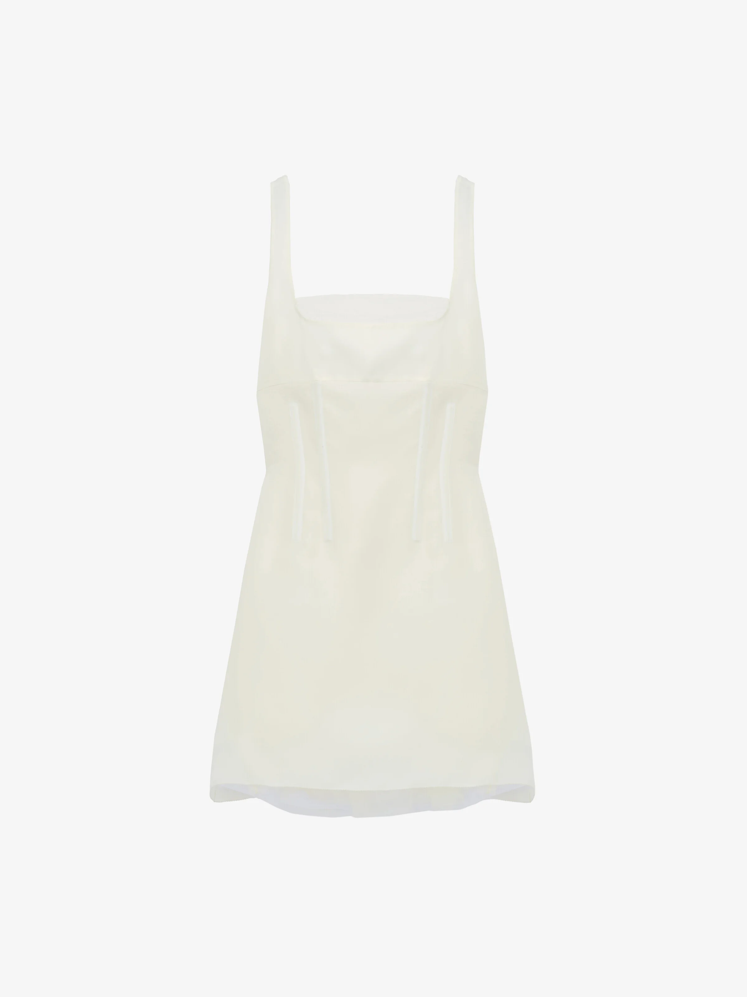 Corset-inspired mini dress in chalk washed satin organza. Square neck and kickback silhouette. Finished with a back zip fastening. Product details - Square neck - Back zip fastening - Product code: 849877QBADM9019 - Made in ITALY - Material: 100% Silk
