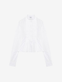 Shirt in optical white cotton poplin. Mandarin collar, tonal front bib and peplum detailing. Finished with a concealed button fastening. Product details - Mandarin collar - Long sleeves - Concealed button fastening - Product code: 848071QAABS9000 - Made in ITALY - Material: 100% Cotton