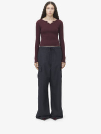 Crew neck top in burgundy cotton rib. Front slit with chain and skull button detailing. Product details - Slit crew neck - Long sleeves - Chain Detail - Product code: 815630QLAEE5006 - Made in Italy - Material: Cotton