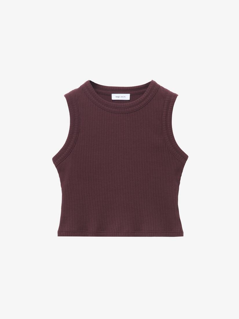 Crew neck tank top in burgundy cotton rib. McQueen Logo branded bar on the centre front. Product details - Crew neck - Product code: 815492QLAEE5006 - Made in Italy - Material: Cotton
