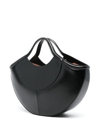 Cove leather tote bag Highlights - Black - Calf leather - Panelled design - Adjustable detachable shoulder strap - Two rolled top handles - Logo stamp to the front - Main compartment - Internal press-stud fastening pouch - Full lining - Silver-tone hardware - Open top with hook fastening - This piece comes complete with a protective dust bag. Made in Italy Composition Outer: Calf Leather 100% SIZE & FIT Model measurements Height 5 ft 10 in(1.78 m) Bust/Chest 33.46 in(85 cm) Hips 36.22 in(92 cm) Waist 23.22 in(59 cm) Measurement DEPTH 4.33 in(11 cm) HANDLE 4.33 in(11 cm) HEIGHT 9.64 in(24.5 cm) WIDTH 18.89 in(48 cm)