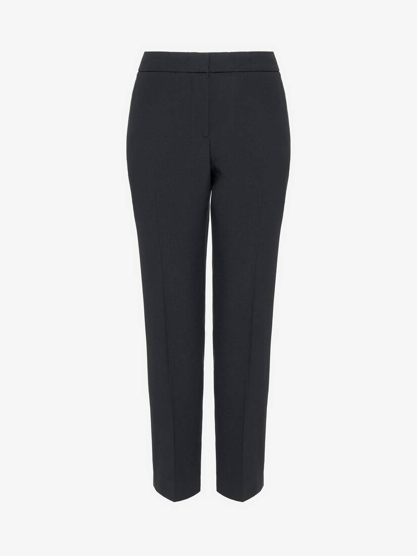 Black leaf crepe cigarette trousers featuring a high waist, two side pockets and a jetted pocket on the back. The trousers are finished with a concealed zip and hook fastening. Product details - High waist - Side pockets - Concealed zip and hook fastening - Fits true to size - Product code: 585118QEAAA1000 - Made in Italy - Material: 52% Viscose, 48% Acetate