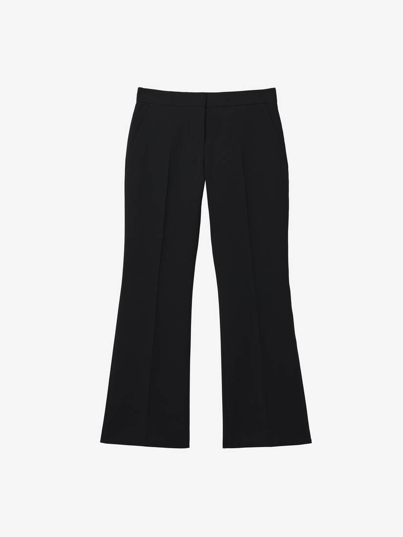 Cropped tailored trousers. Mid rise. Black wool gabardine with two side pockets and one back jetted pocket. Finished with concealed zip and hook fastening. Product details - Regular waist - Side pockets - Concealed zip and hook fastening - Made with certified wool yarn - Product code: 803107QJADK1000 - Made in Italy - Material: 100% Wool