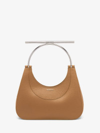 The McQueen T-Bar bag – brown textured lamb leather. The structured body features pleated sides. Detailed with a statement circular T-Bar handle in silver tone metal engraved with the McQueen logo. Can be styled handheld, on the shoulder or crossbody using the detachable leather strap. Product details - Dimensions: Length 30 x Height 25 x Depth 10 cm / 11.8 x 9.8 x 3.9 inches - T-Bar length: 23 cm / 9 inches - Detachable and adjustable leather strap - Strap drop: 50-60 cm / 19.6-23.6 inches - McQueen metal lettering - Zip fastening - Silver-finished hardware - One central compartment - Internal zip pocket with card slot and metal D-ring - Nappa leather lining - Product code: 8035241VDBB2116 - Made in Italy - Material: Lambskin