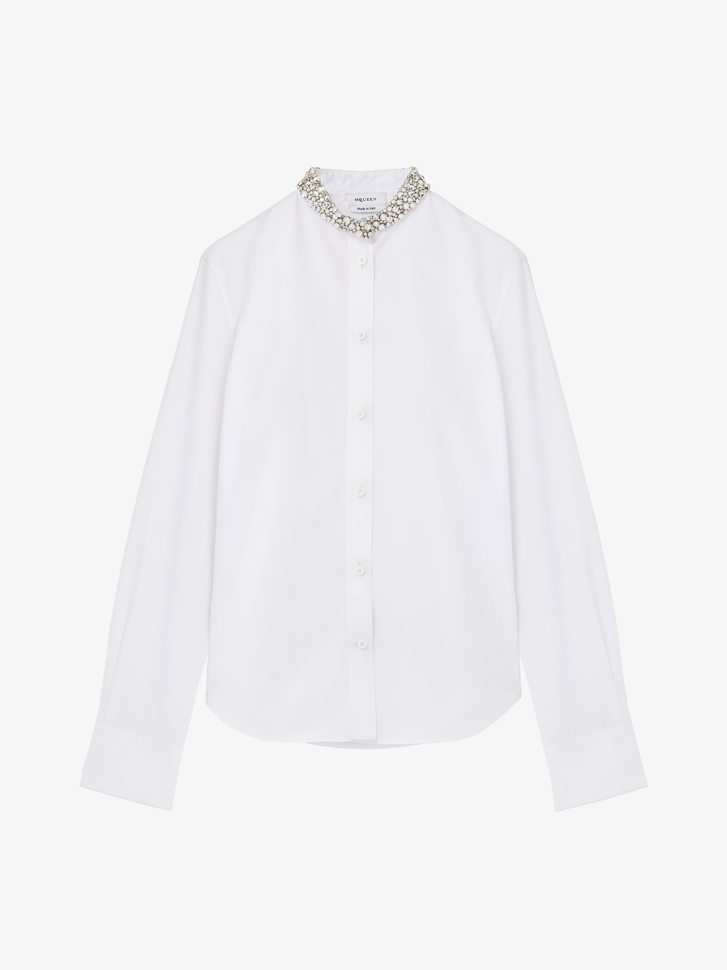 Shirt in optical white compact cotton poplin. Point collar with Crystal embroidery. Finished with a front button fastening. Product details - Point collar - Front button fastening - Product code: 838926QAABT9000 - Made in Italy - Material: Cotton