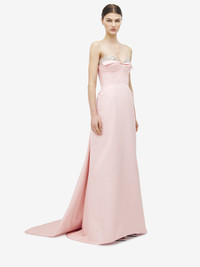 Strapless evening dress in rose duchesse. Sculptural draping at the neckline with Crystal embroidery. Long flared skirt with draped pleat detailing at the back. Finished with a back zip fastening. Product details - Sweetheart neckline - Pleat detailing - Back zip fastening - Product code: 840284QZAPM5009 - Made in ITALY - Material: 61% Polyester, 39% Silk